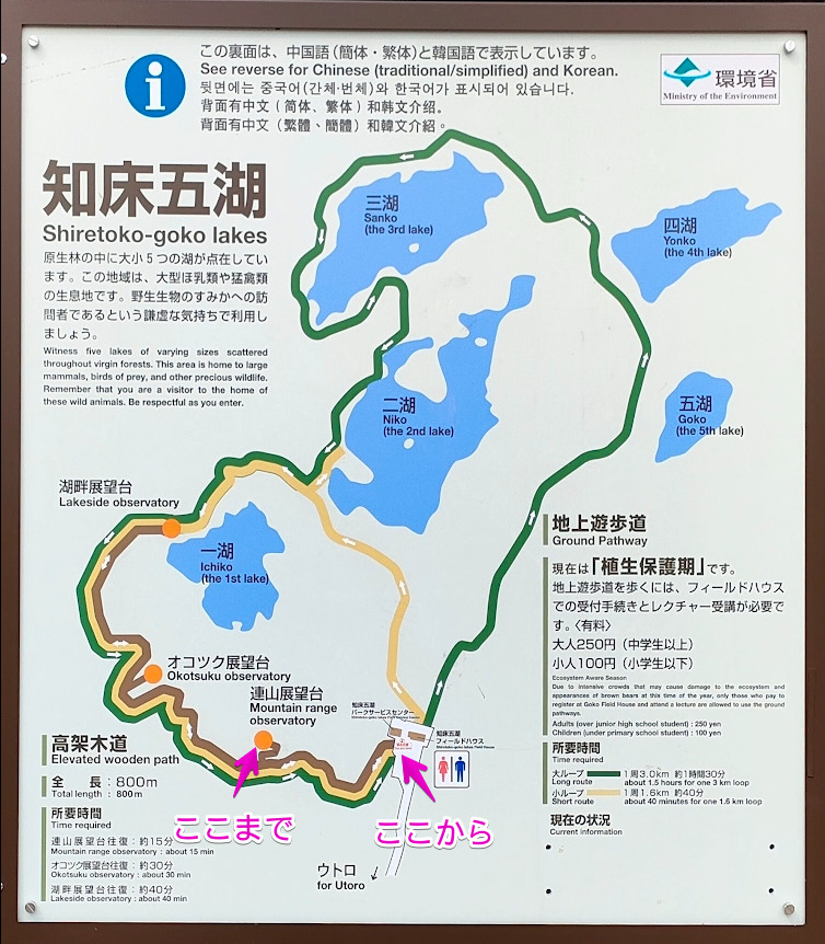 湯の滝の帰りに知床五湖の木道のところに寄りました。