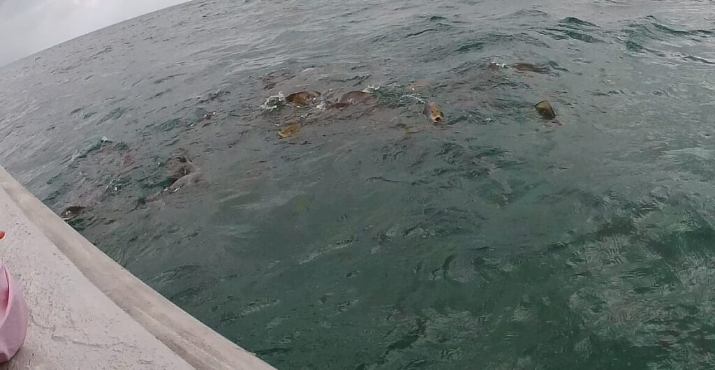 ↓三崎の観光船と同じシステムかはわからないけど、エサもあげてた。