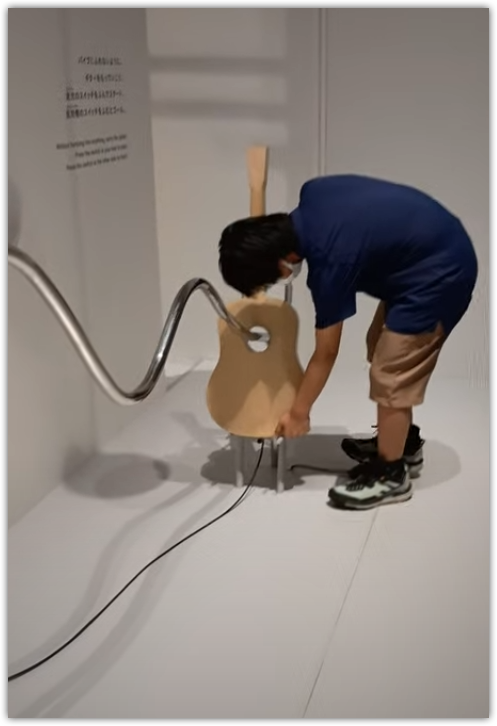 ギター型のオブジェの穴を使ったイライラ棒。