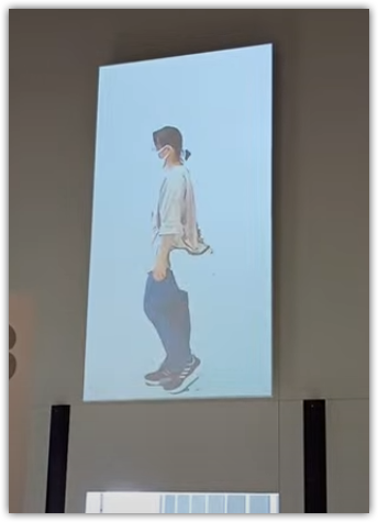 これは、ちょっとずつ違う動作を複数人で撮影した写真がその場で映し出されて「あるく」の動作になるやつ。