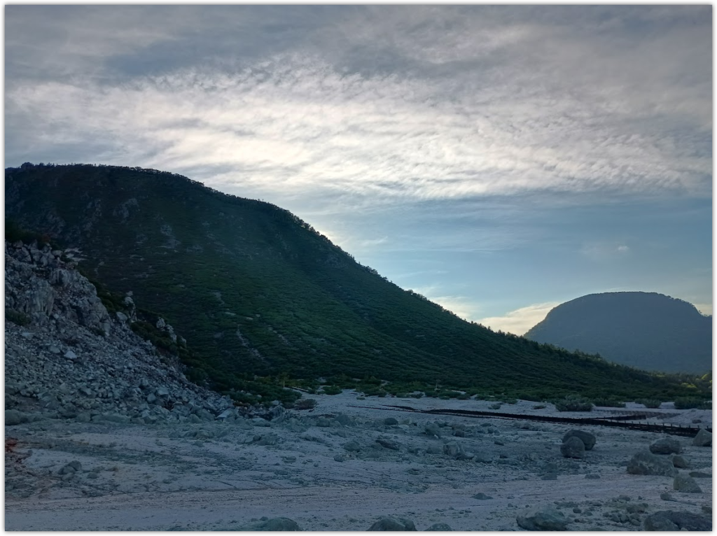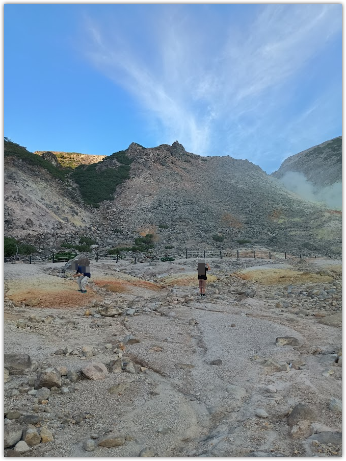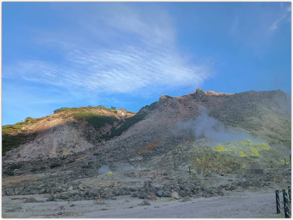 あまりにもきれいだったので、展望台のはしごをしつつ、硫黄山も目指します。