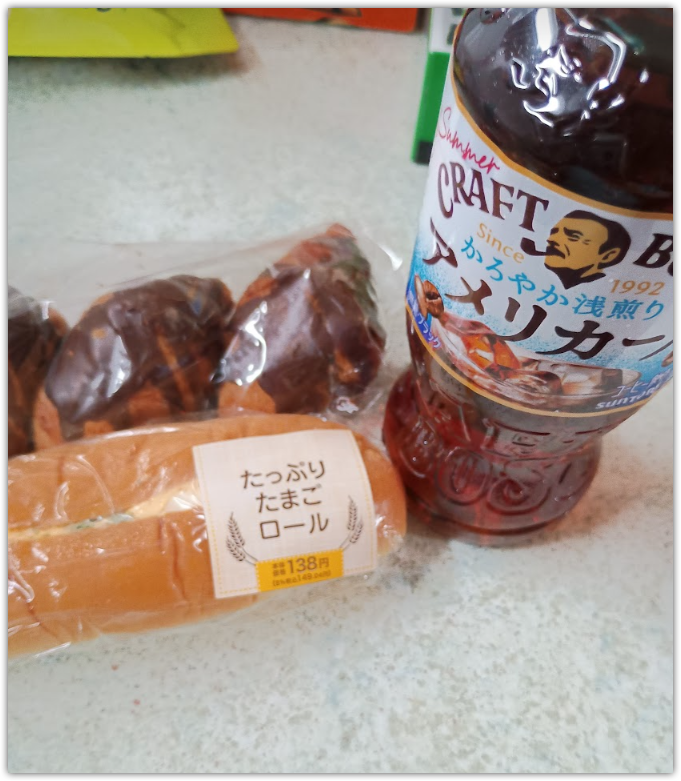 ↓朝食はセコマの「たったまロール」…って我が家では略してるけど^^;「たっぷりたまごロール」にチョコクロ(ミニ)。