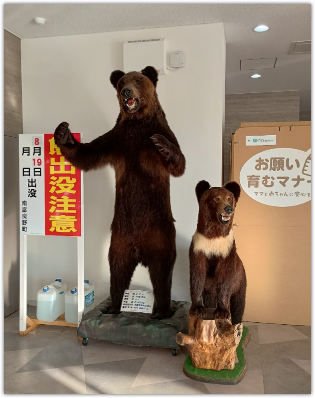 ↓施設内には熊出没情報とかもあるし。これ、8月19日の話なので…当日も出てる、と。