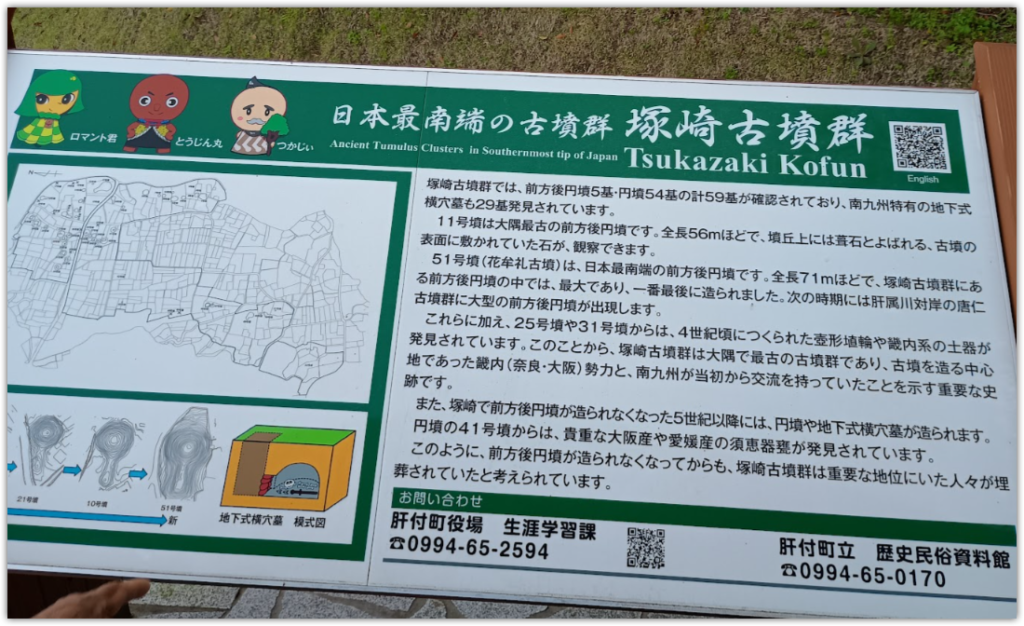 この辺りは日本最南端の古墳群と言われる「塚崎古墳群」の地域です。