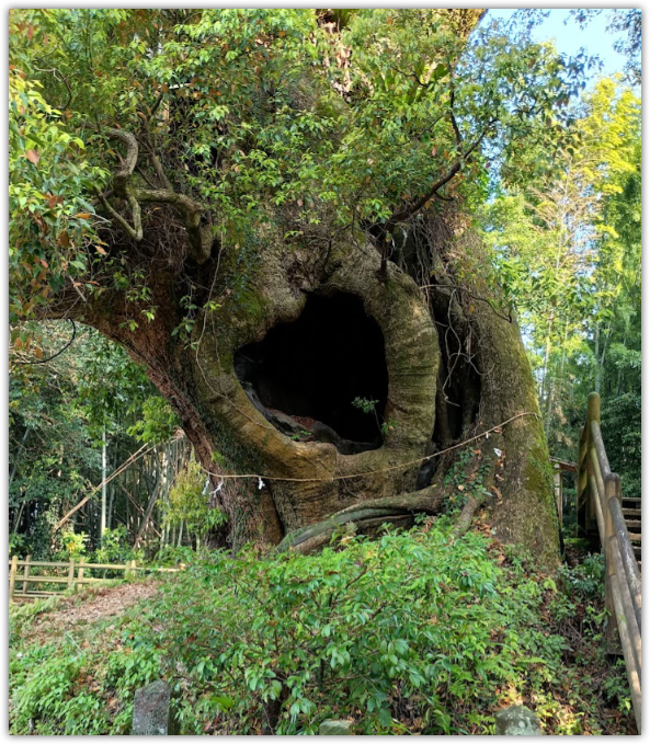 古墳の上に生えている樹齢1200年以上の巨木です。