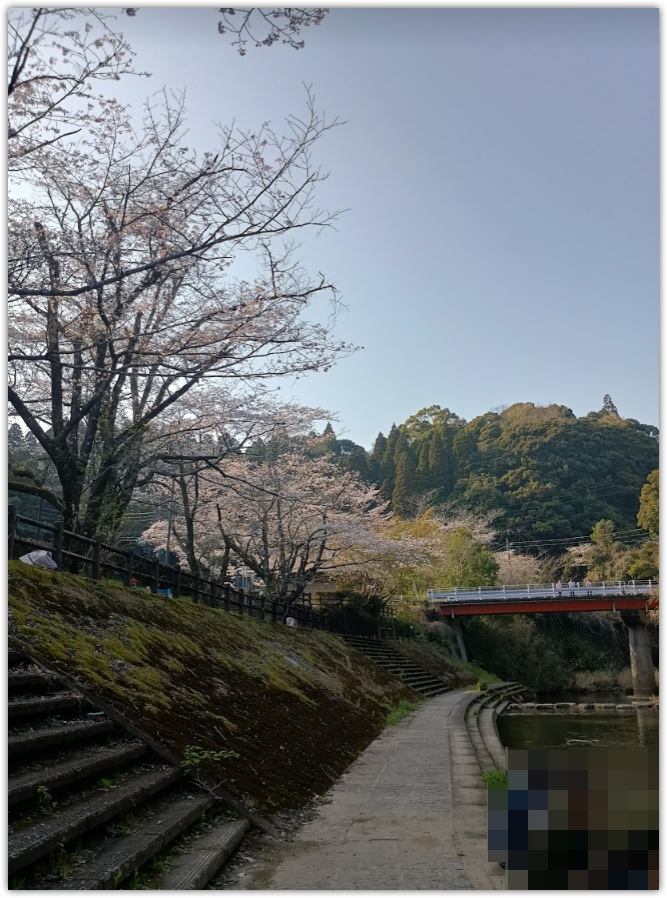 帰りに駐車場の近くのところで川に下りてちょっとだけお花見タイム