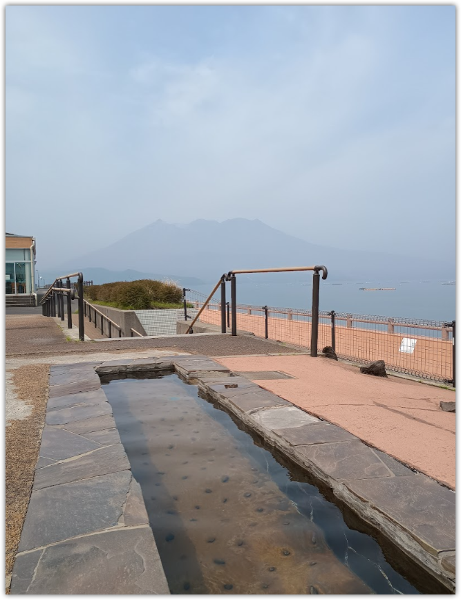 最後は道の駅たるみずで足湯に入りながら桜島~