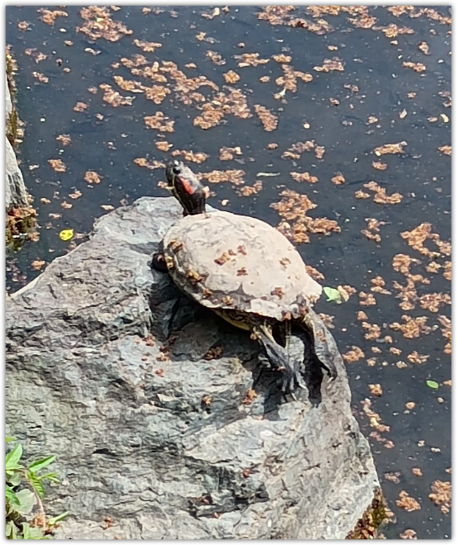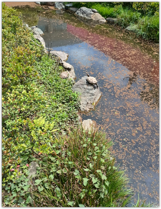 亀たちが甲羅干ししてた。