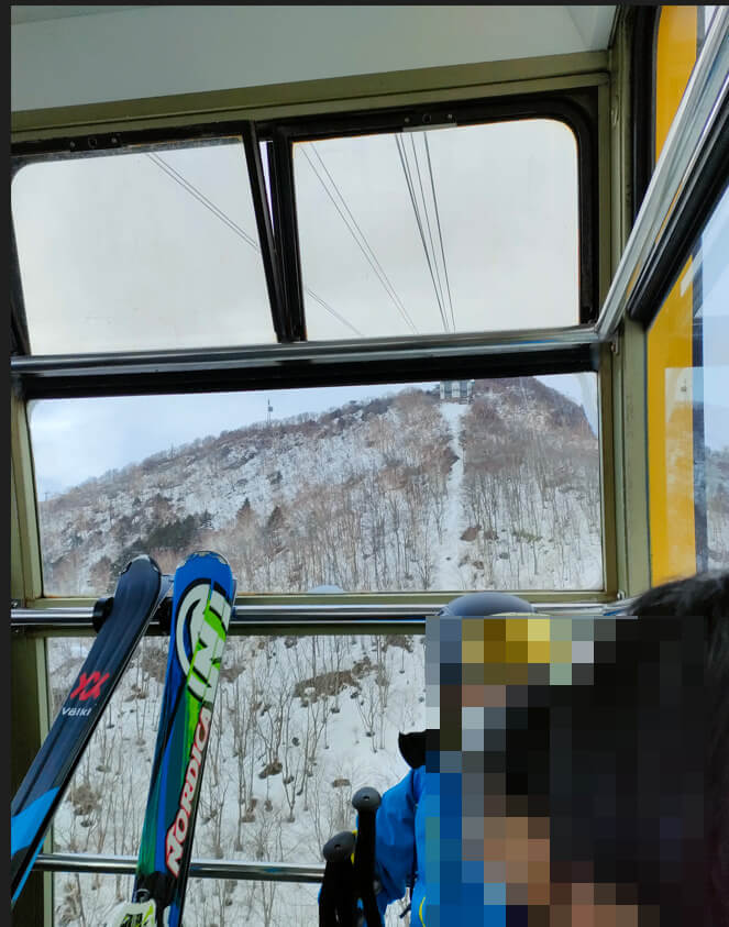 車内でスキーの装備を整え、いざ!ロープウェイに乗車。