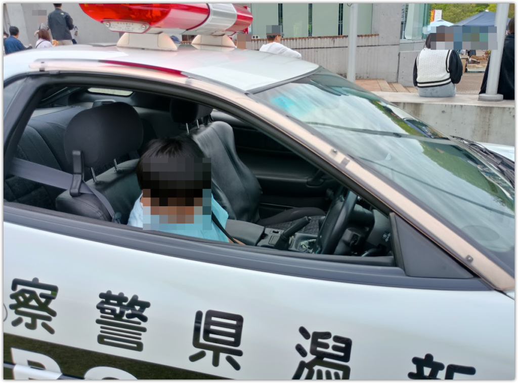 別のとこではGTOパトカーも展示されてたので、次男を載せて写真撮ったり。