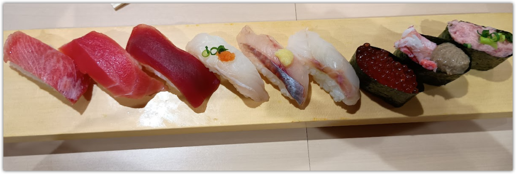 ぱっと見回転寿司みたいな店構えなんだけど、職人さんが握ってくれるタイプのお店でした。(時間帯によるのかな?)